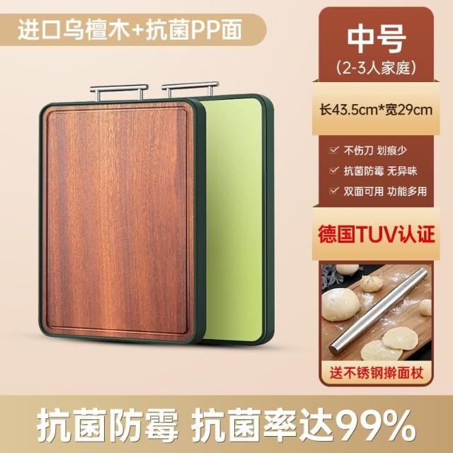 匠藝家居雙面烏壇木/不鏽鋼砧板 木砧板 原木砧板 無拼接木砧板 實木砧板 防霉菜板 抗菌率99% 防裂包邊