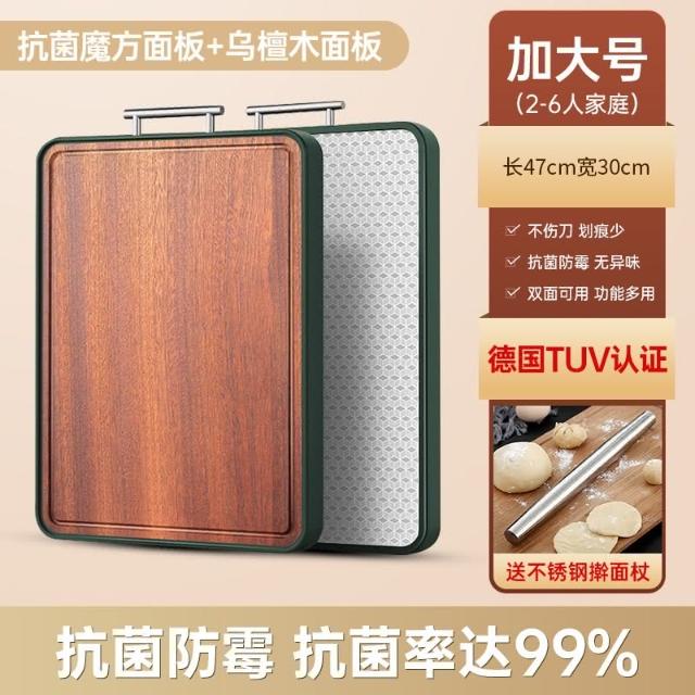 匠藝家居雙面烏壇木/不鏽鋼砧板 木砧板 原木砧板 無拼接木砧板 實木砧板 防霉菜板 抗菌率99% 防裂包邊
