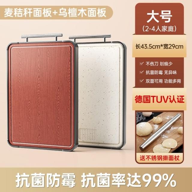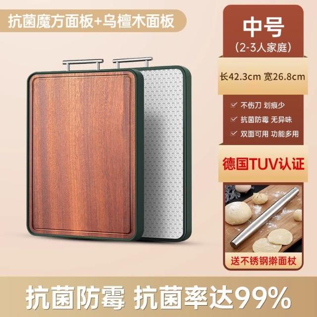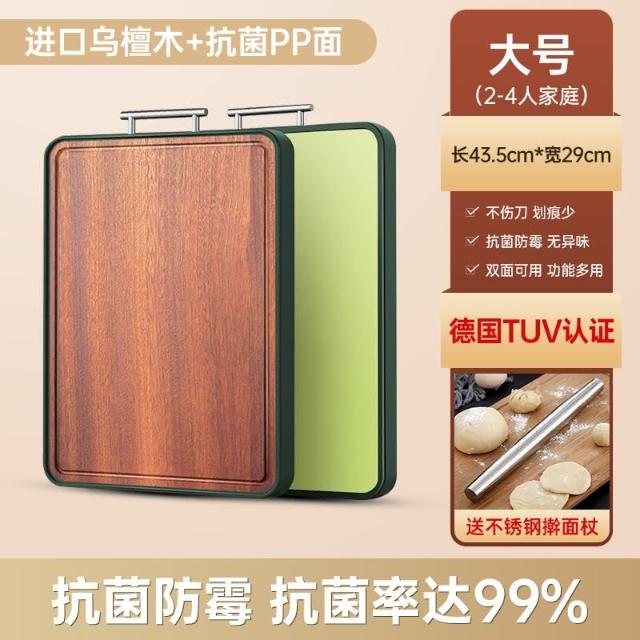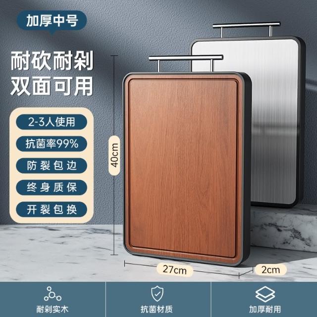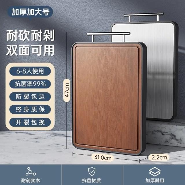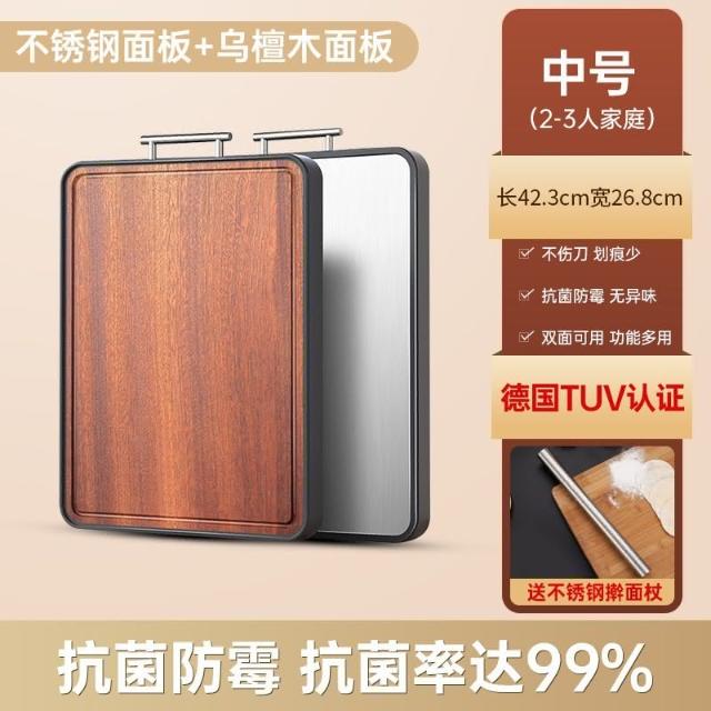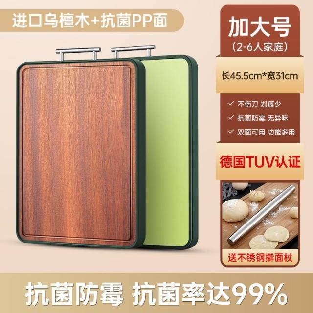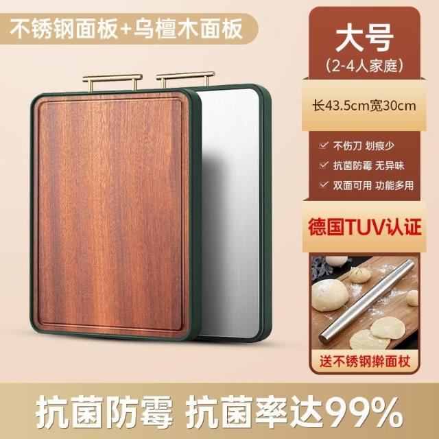 匠藝家居雙面烏壇木/不鏽鋼砧板 木砧板 原木砧板 無拼接木砧板 實木砧板 防霉菜板 抗菌率99% 防裂包邊