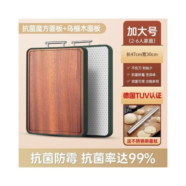匠藝家居雙面烏壇木/不鏽鋼砧板 木砧板 原木砧板 無拼接木砧板 實木砧板 防霉菜板 抗菌率99% 防裂包邊
