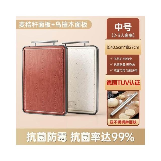 匠藝家居雙面烏壇木/不鏽鋼砧板 木砧板 原木砧板 無拼接木砧板 實木砧板 防霉菜板 抗菌率99% 防裂包邊