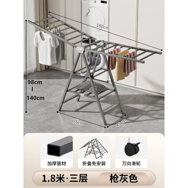 匠藝家居碳鋼加厚晾衣架 曬衣架 晾衣架 曬被架 折疊曬衣架 衣架 掛衣架 落地晾衣架 晾衣桿 可折疊 三層晾曬