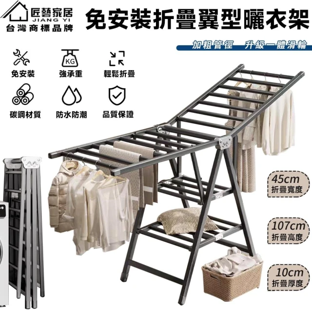 匠藝家居碳鋼加厚晾衣架 曬衣架 晾衣架 曬被架 折疊曬衣架 衣架 掛衣架 落地晾衣架 晾衣桿 可折疊 三層晾曬
