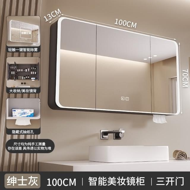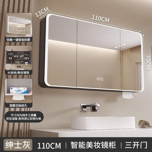 匠藝家居110V浴室智能鏡櫃 浴室鏡櫃 掛牆式鏡面櫃 廁所置物櫃 衛浴化妝鏡 浴櫃 智能除霧+自然補光燈