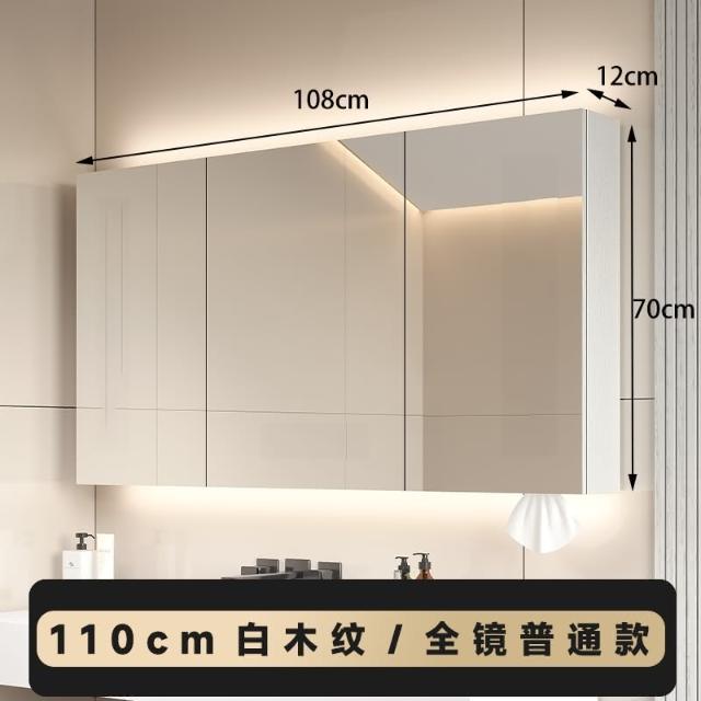 匠藝家居實木儲物鏡櫃 浴室鏡櫃 掛牆式鏡面櫃 化妝鏡 浴櫃(110公分 紙巾孔 防爆鏡面 防水板材 多層儲物)