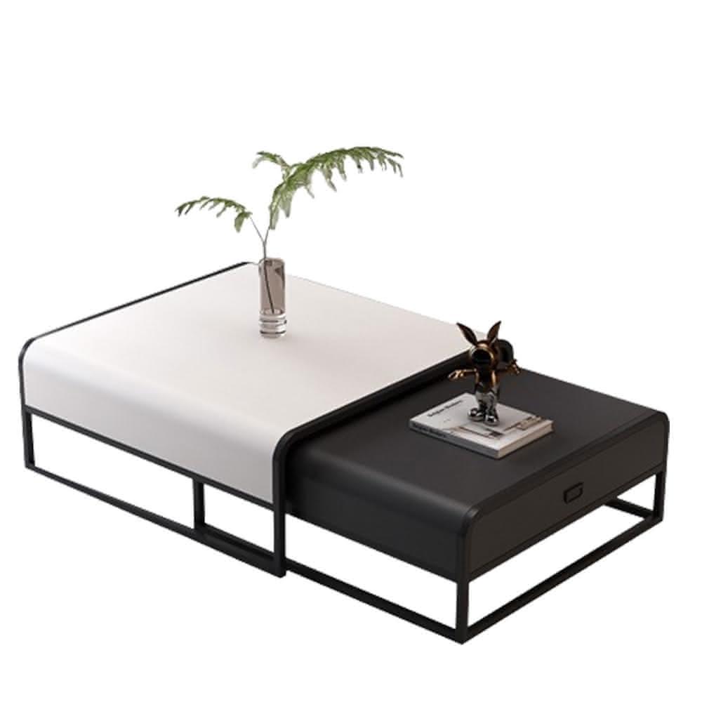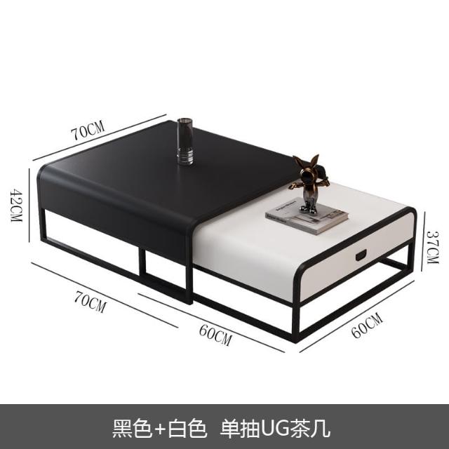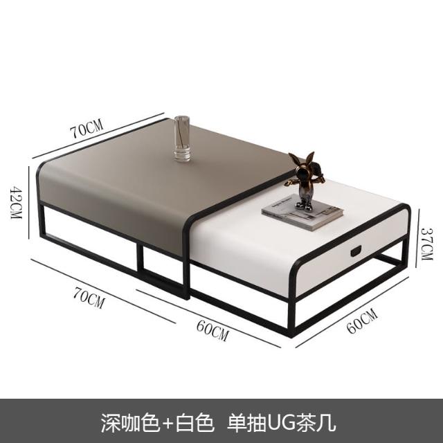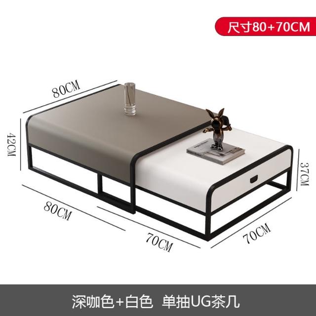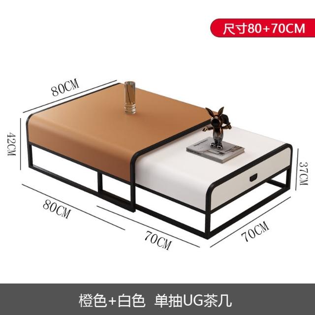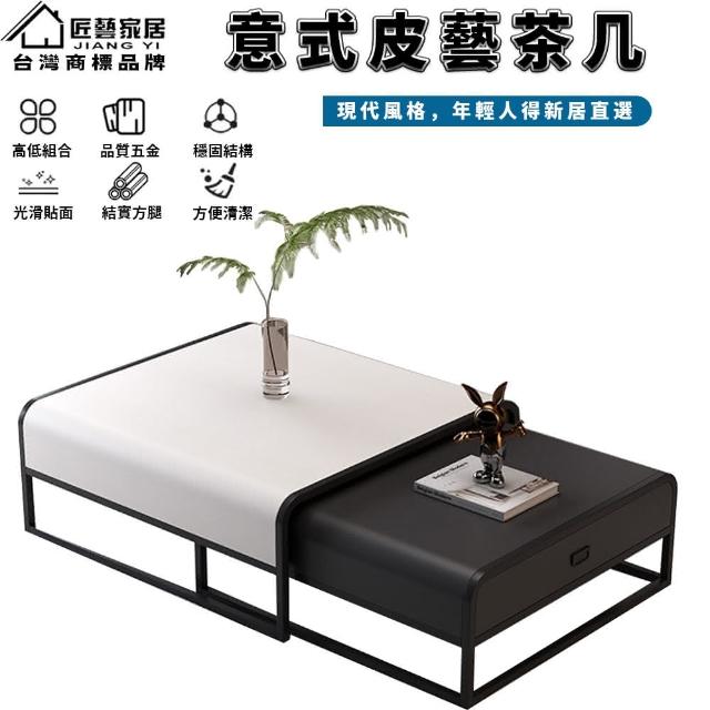 匠藝家居皮藝茶几桌 子母茶几 茶幾 矮桌 客廳桌(70+60公分帶抽屜 高低組合 皮革台面)