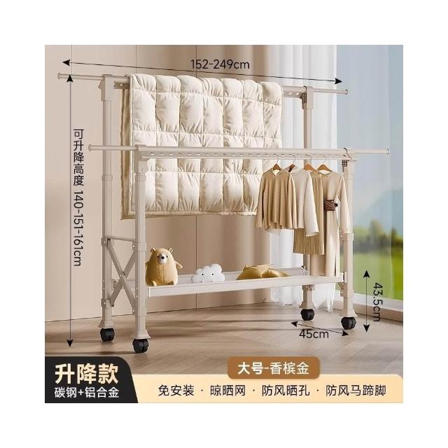 匠藝家居升級伸縮桿設計!鋁合金防鏽晾衣架 落地曬衣架 防風衣架 不鏽鋼衣架 伸縮曬衣架 折疊收納 免安裝折疊 三檔升降高度