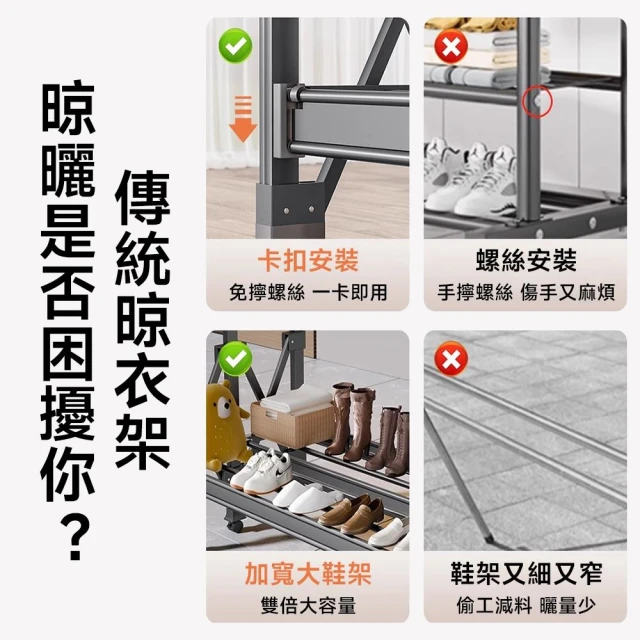 匠藝家居升級伸縮桿設計!鋁合金防鏽晾衣架 落地曬衣架 防風衣架 不鏽鋼衣架 伸縮曬衣架 折疊收納 免安裝折疊 三檔升降高度