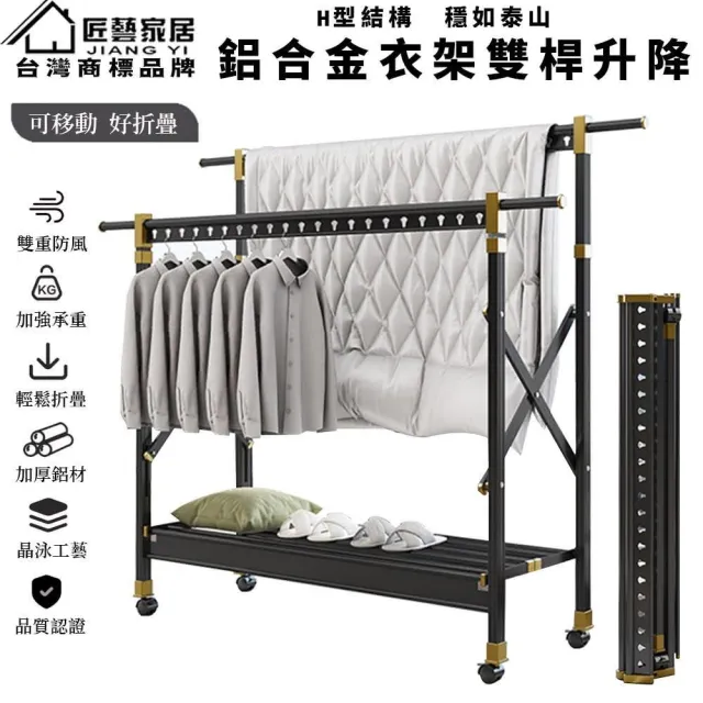 匠藝家居升級伸縮桿設計!鋁合金防鏽晾衣架 落地曬衣架 防風衣架 不鏽鋼衣架 伸縮曬衣架 折疊收納 免安裝折疊 三檔升降高度