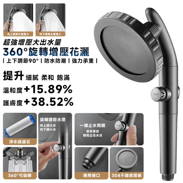 匠藝家居360°旋轉蓮蓬頭 增壓花灑 淋浴頭 花灑頭(2米防爆管+支架 手噴/頂噴兩用 淨水過濾芯)