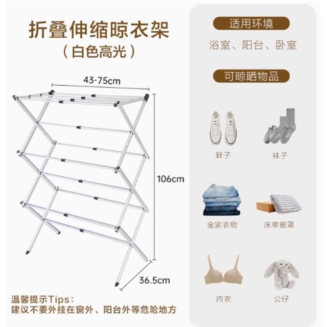 匠藝家居折疊伸縮晾衣架 曬衣架 家用小型晾衣桿(可伸縮43-75CM 輕巧便捷 碳鋼材質)