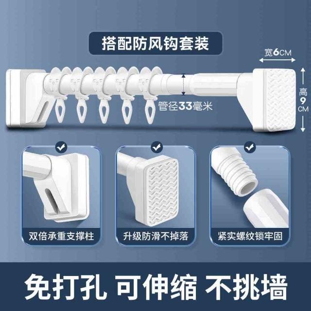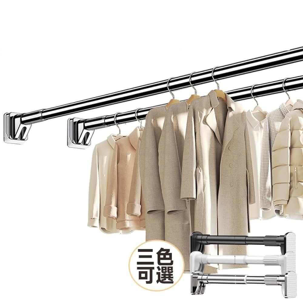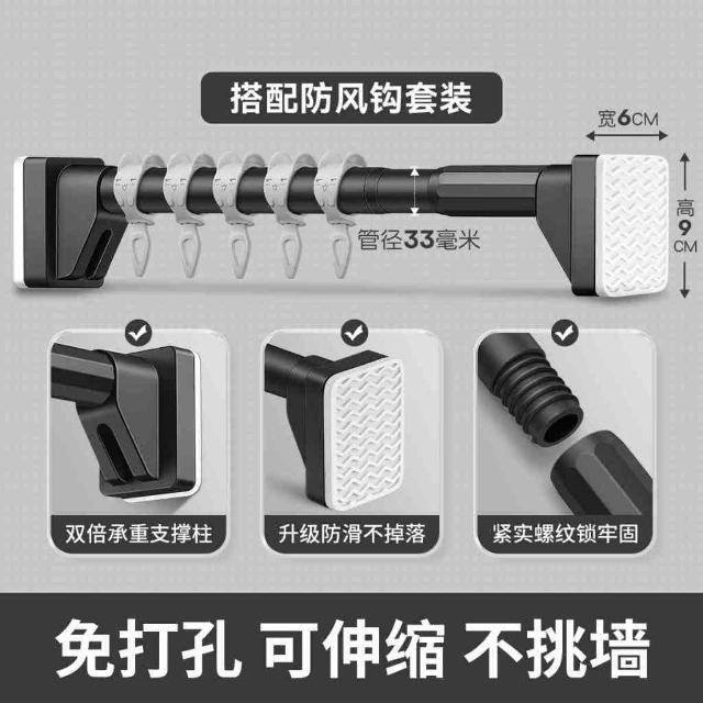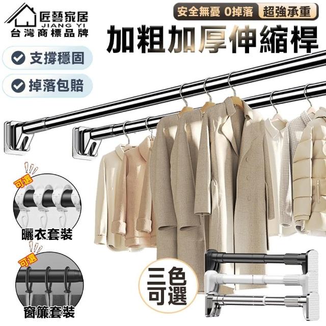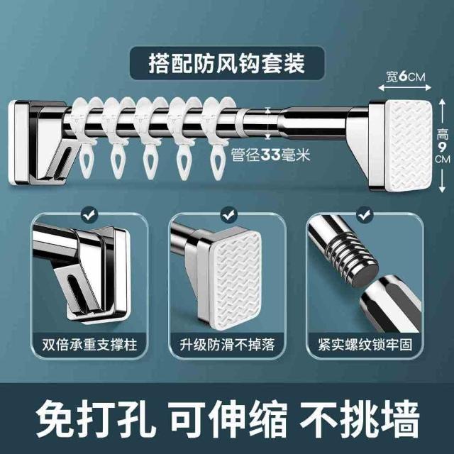 匠藝家居不鏽鋼伸縮桿 伸縮晾衣桿 浴簾桿 窗簾桿 曬衣桿 防滑底座/無需打孔/防水防鏽 晾衣套裝+5防風鈎 150-260公分