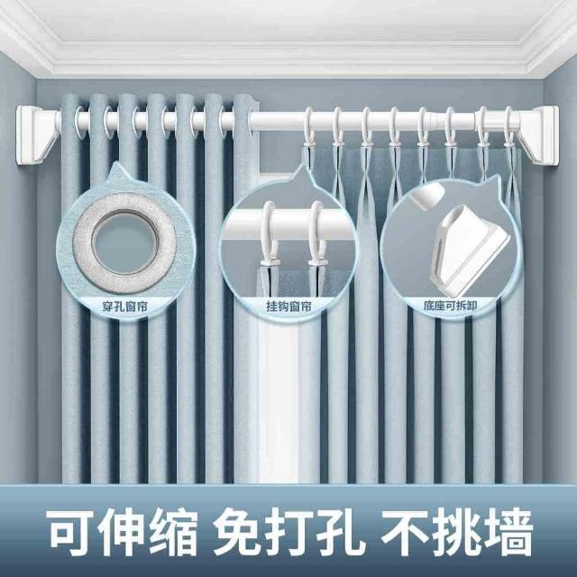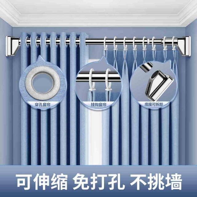匠藝家居不鏽鋼伸縮桿 伸縮晾衣桿 浴簾桿 窗簾桿 曬衣桿 防滑底座/無需打孔/防水防鏽 挂簾套裝+20窗簾環 200-310公分