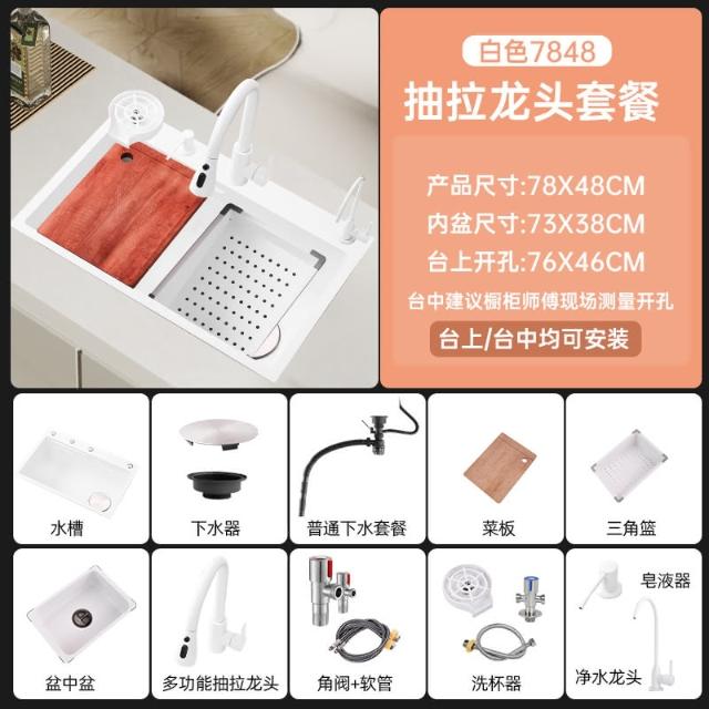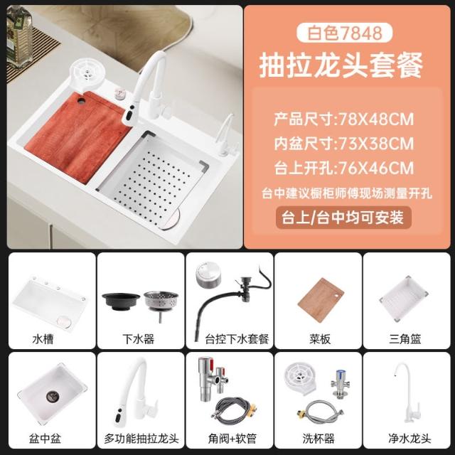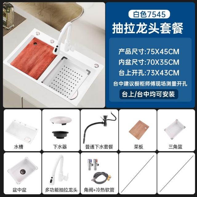 匠藝家居陶瓷白雙台階水槽 水槽 廚房水槽 洗手槽 洗碗槽 304不鏽鋼水槽 納米抗菌不沾水油