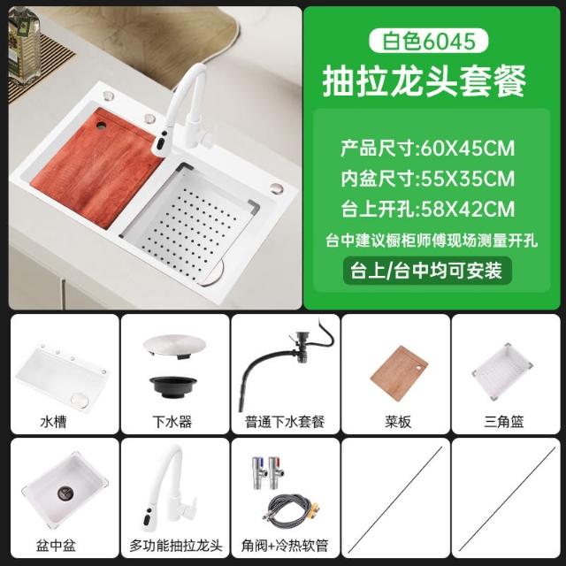 匠藝家居陶瓷白雙台階水槽 水槽 廚房水槽 洗手槽 洗碗槽 304不鏽鋼水槽 納米抗菌不沾水油