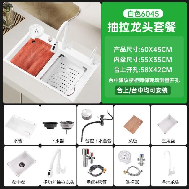 匠藝家居陶瓷白雙台階水槽 水槽 廚房水槽 洗手槽 洗碗槽 304不鏽鋼水槽 納米抗菌不沾水油