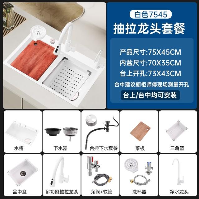 匠藝家居陶瓷白雙台階水槽 水槽 廚房水槽 洗手槽 洗碗槽 304不鏽鋼水槽 納米抗菌不沾水油