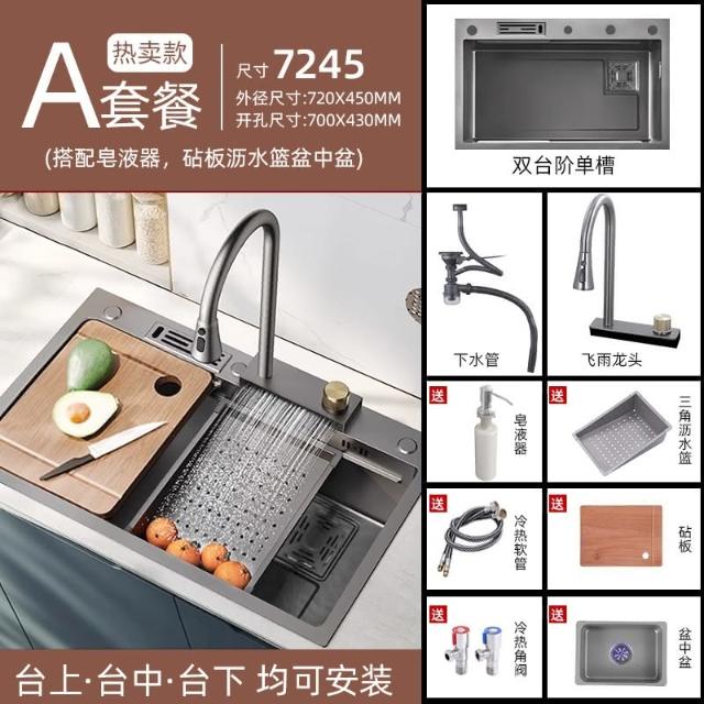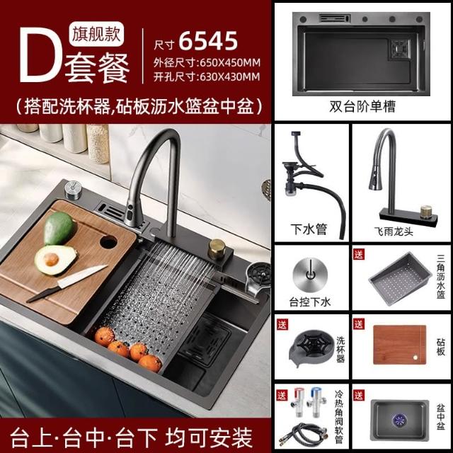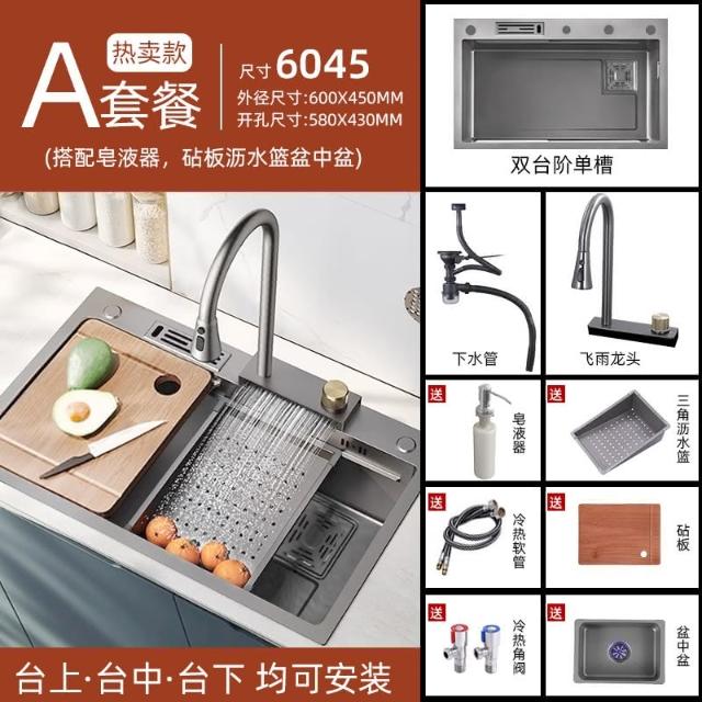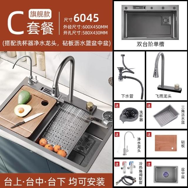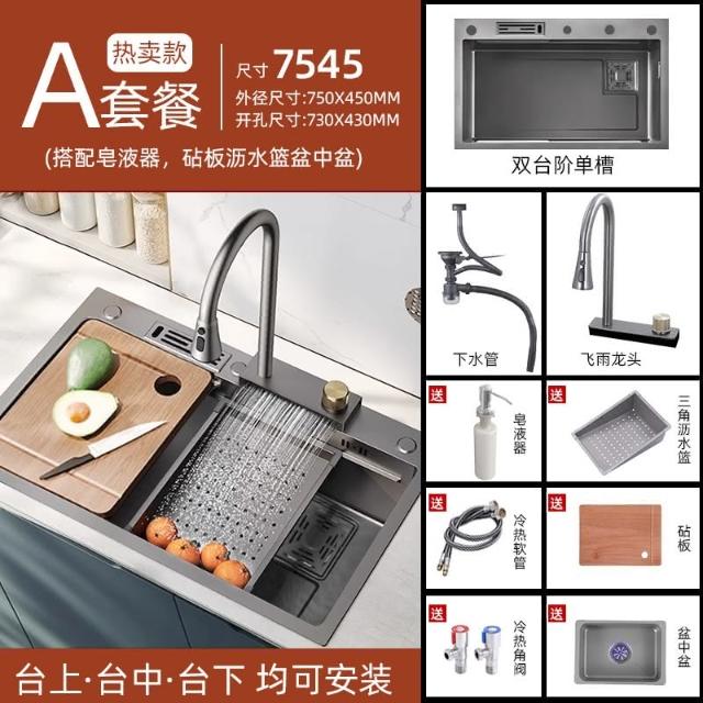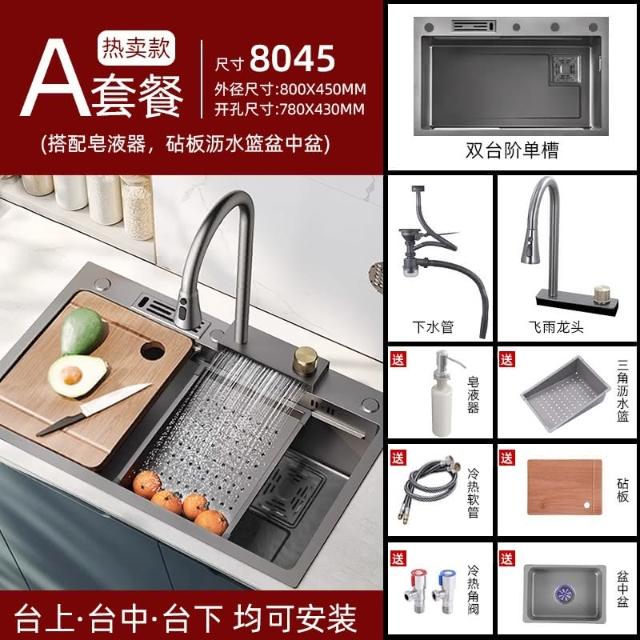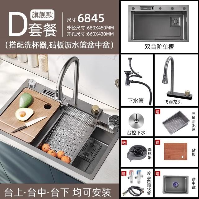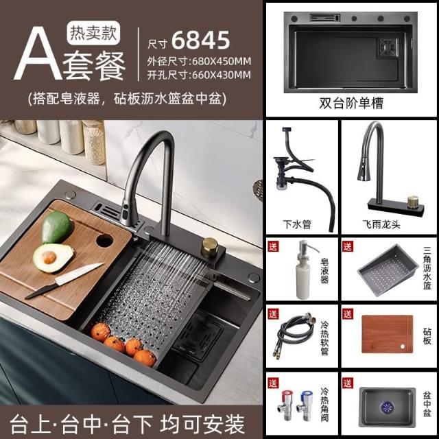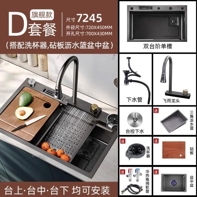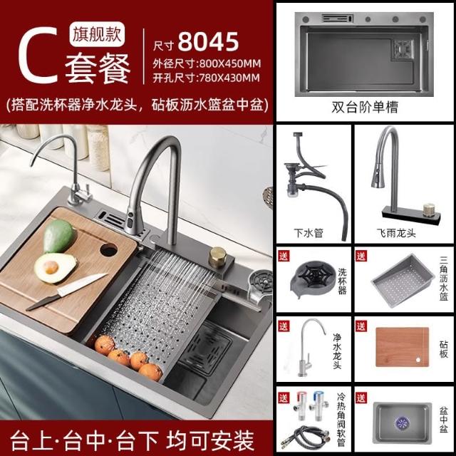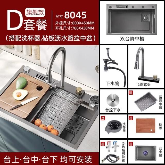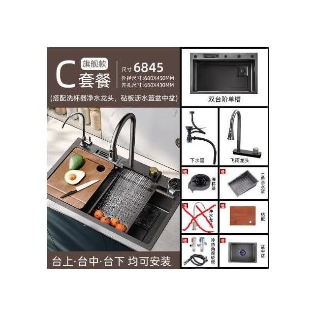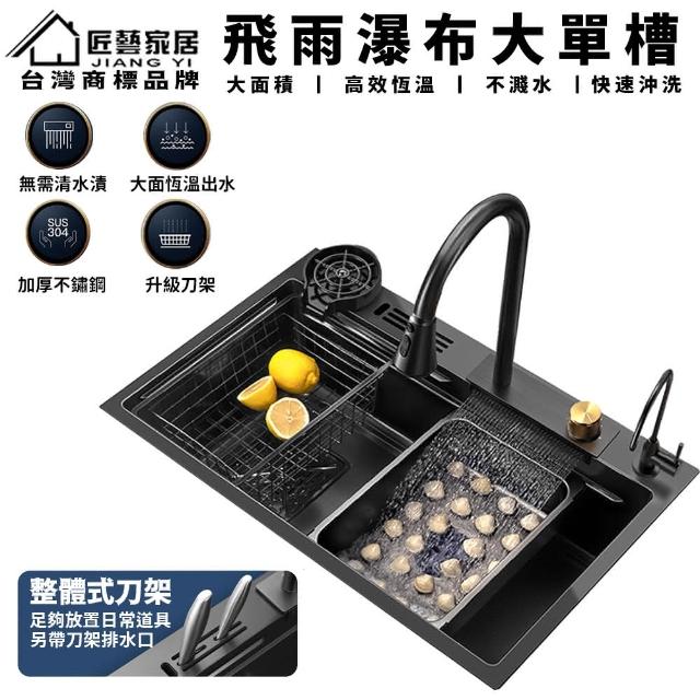 匠藝家居新升級刀架飛雨瀑布 水槽 廚房水槽 洗手槽 納米抗菌塗層 飛雨瀑布大單槽 304不鏽鋼加厚水槽