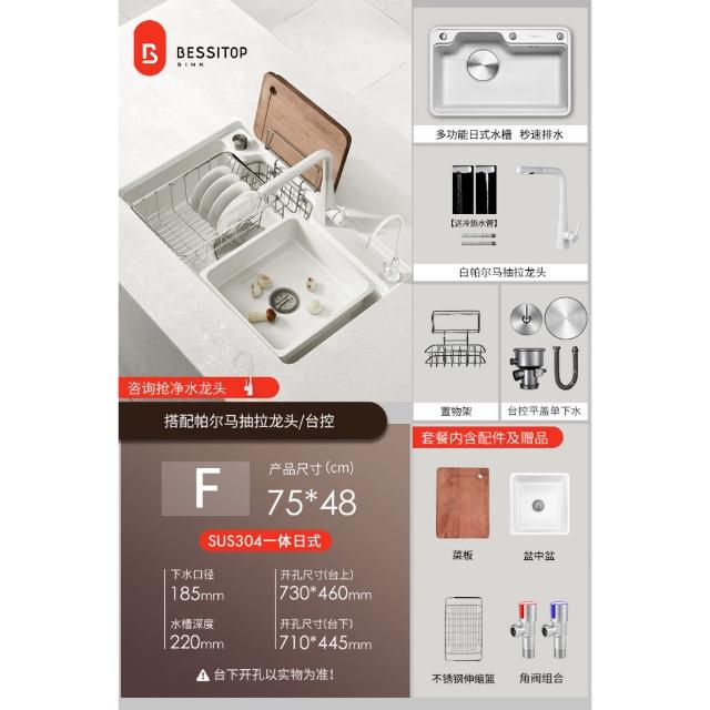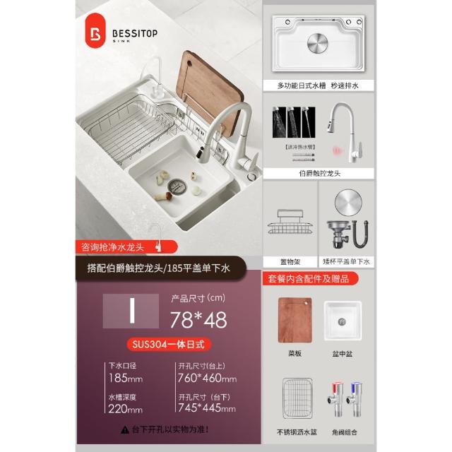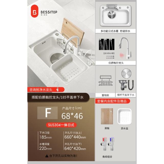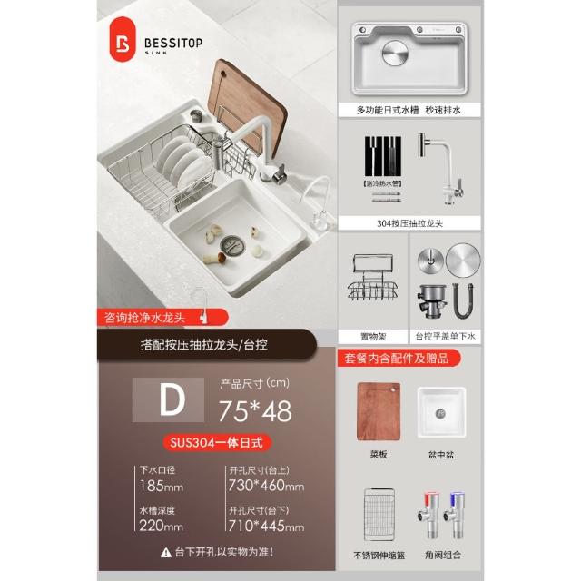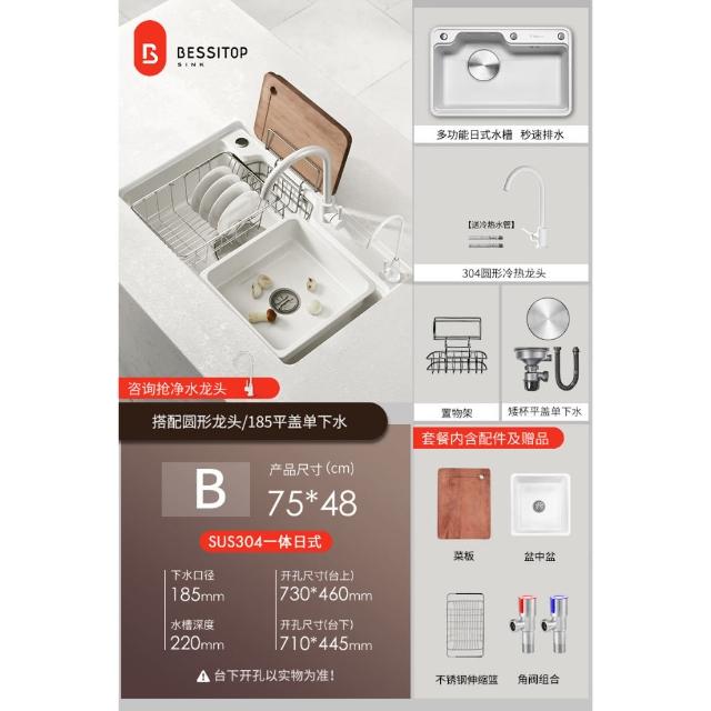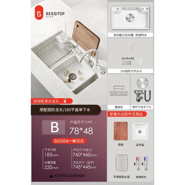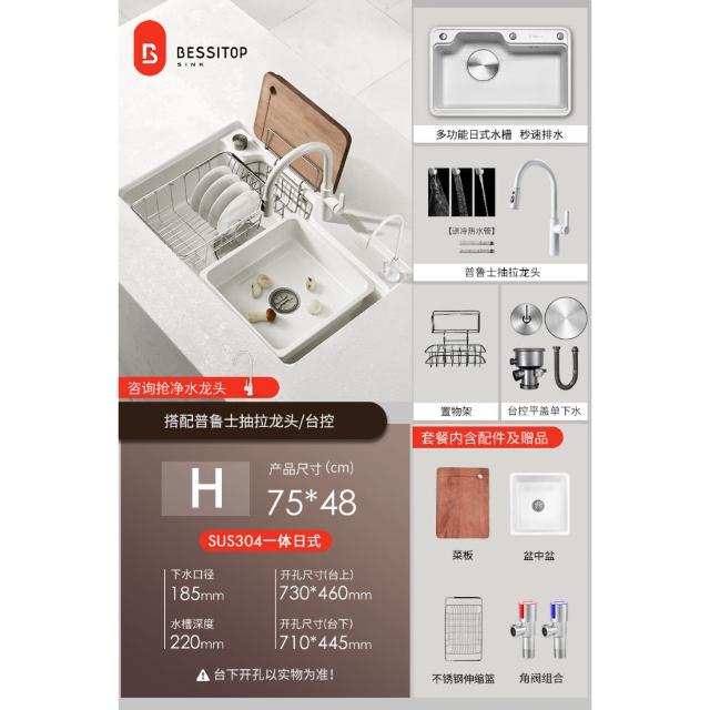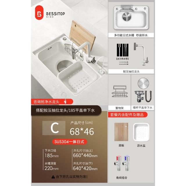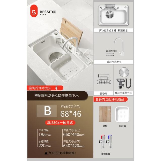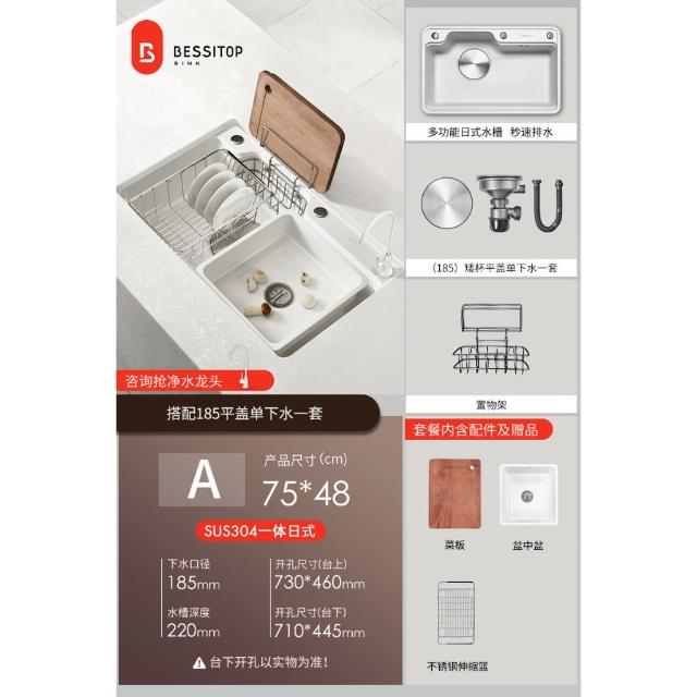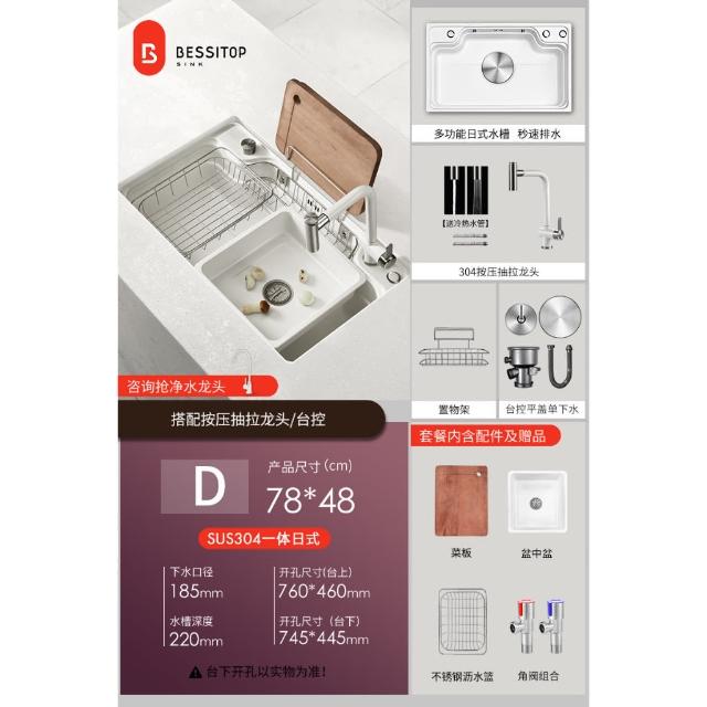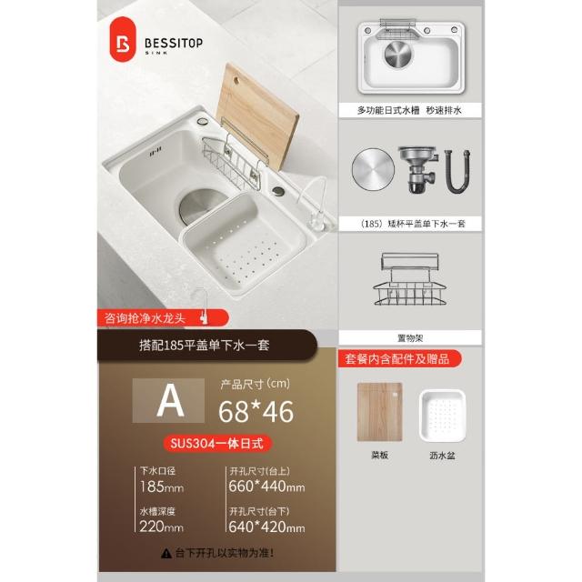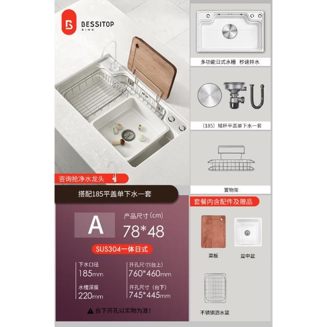 匠藝家居純白色日式大單槽 水槽 304不鏽鋼水槽 廚房水槽 洗碗槽 洗衣槽 手工拉絲大單槽 4MM加厚