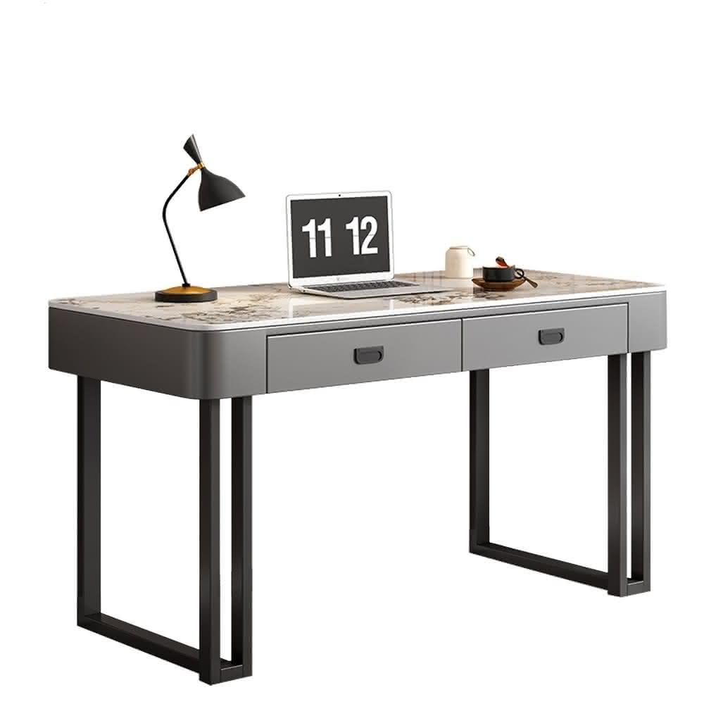 匠藝家居岩板帶抽電腦桌 辦公桌 書桌 工作桌 客廳桌子 實木軌道抽屜 加厚岩板桌面 軟包櫃體