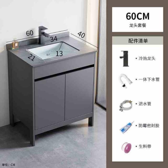 匠藝家居太空鋁落地式浴室櫃 浴櫃 浴室收納櫃 衛生間洗手盆 洗臉盆 陶瓷一體洗漱台 岩板洗手台 破損包賠 60岩板盆+龍頭套餐 不包含安裝