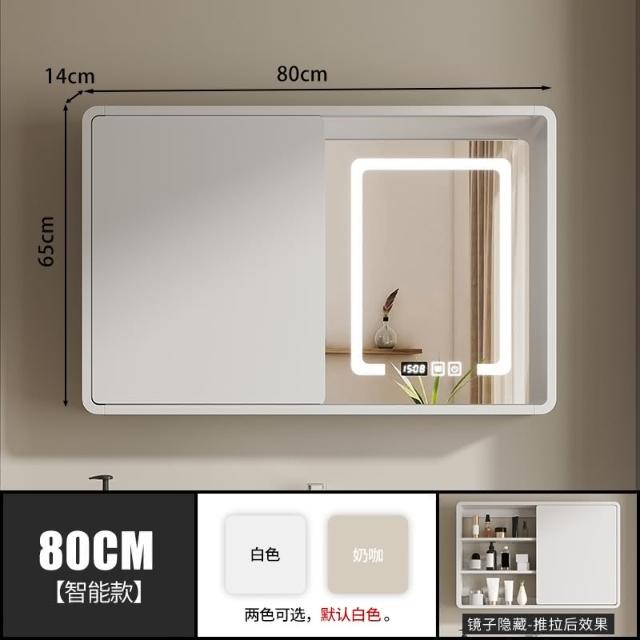 匠藝家居圓弧角隱藏式智能鏡櫃 浴室鏡櫃 掛牆式鏡面櫃 廁所置物櫃 衛浴化妝鏡 浴櫃 多層實木材質/高清防爆鏡面