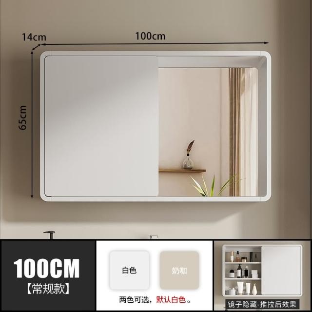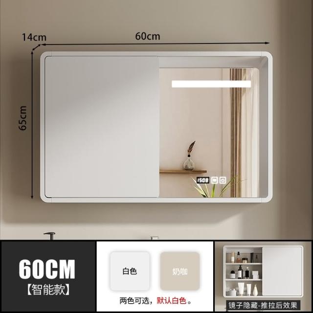 匠藝家居圓弧角隱藏式智能鏡櫃 浴室鏡櫃 掛牆式鏡面櫃 廁所置物櫃 衛浴化妝鏡 浴櫃 多層實木材質/高清防爆鏡面
