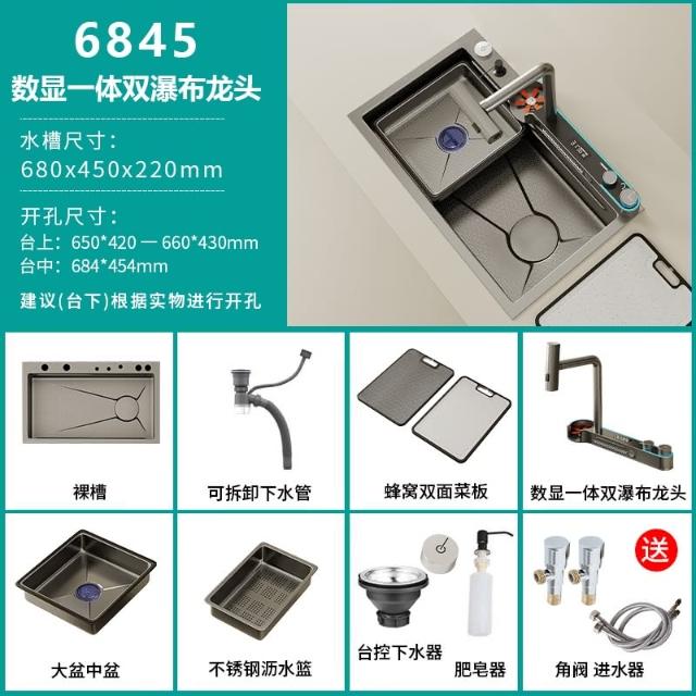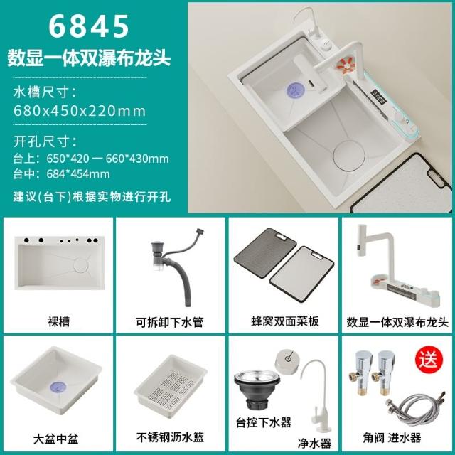 匠藝家居數顯流光飛雨瀑布大單槽 水槽 洗碗槽 蜂窩壓紋 耐刮/耐磨/抗菌 黑色水槽/白色水槽