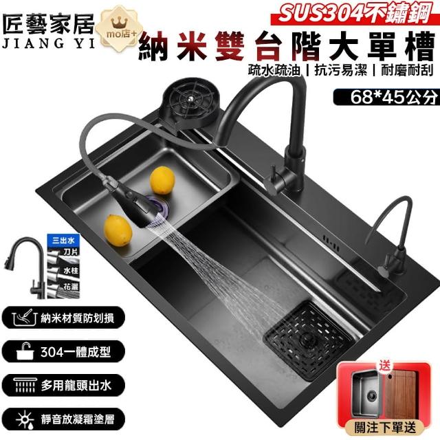 匠藝家居雙台階納米大單槽 水槽 廚房水槽 洗手槽 洗碗槽 304不鏽鋼水槽 納米抗菌不沾水油
