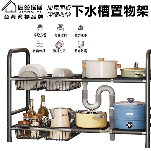 匠藝家居下水槽置物架 水槽置物架 雙層置物架 可伸縮50~90cm 雙層6板8板 鍋架 碗碟置物架 置物架