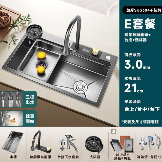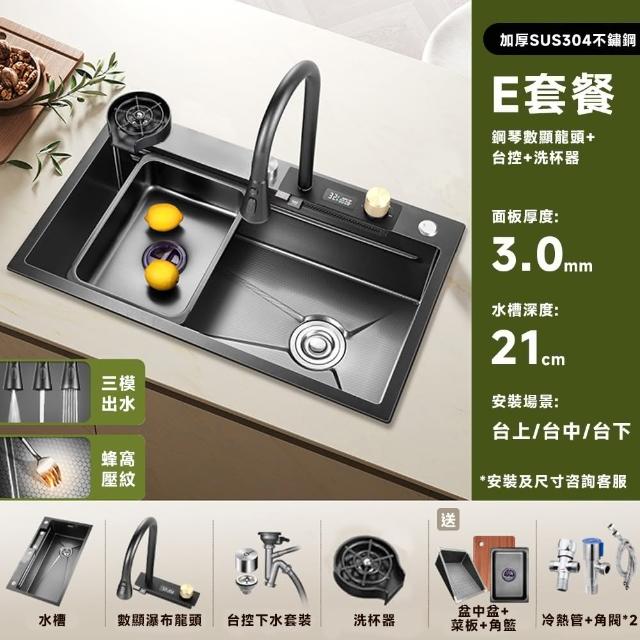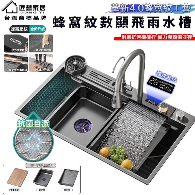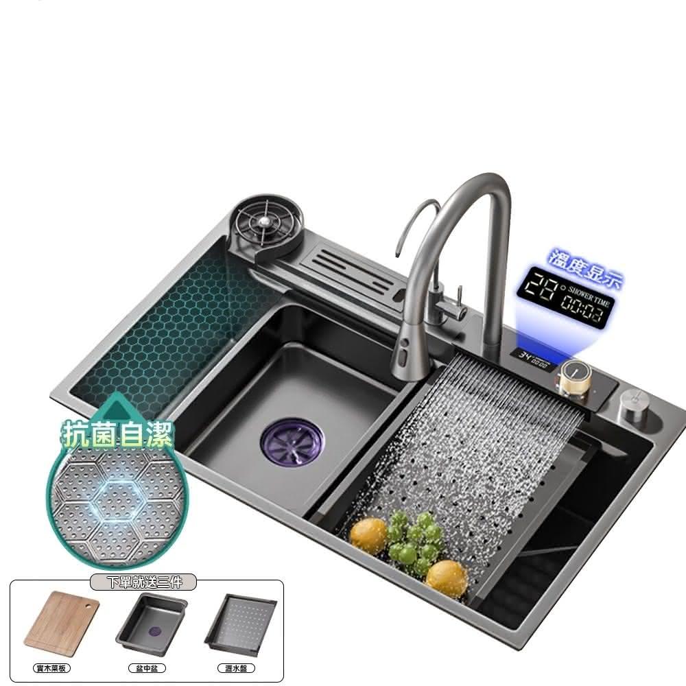 匠藝家居水溫顯示 數顯飛雨瀑布大單槽 304不鏽鋼水槽 水槽 洗碗槽 廚房水槽 納米抗菌塗層