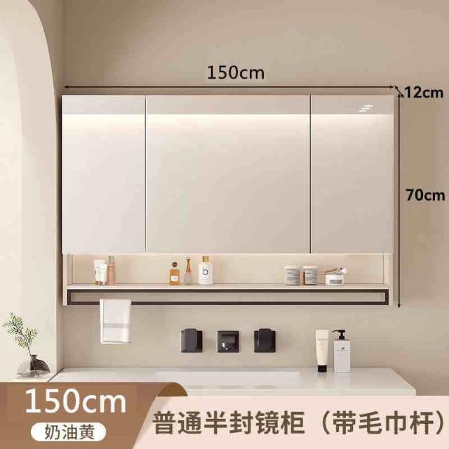 匠藝家居智能鏡櫃 110V浴室鏡櫃 掛牆式鏡面櫃 衛生間壁掛收納櫃 鏡面櫃 浴櫃 三色變光 升級毛巾桿