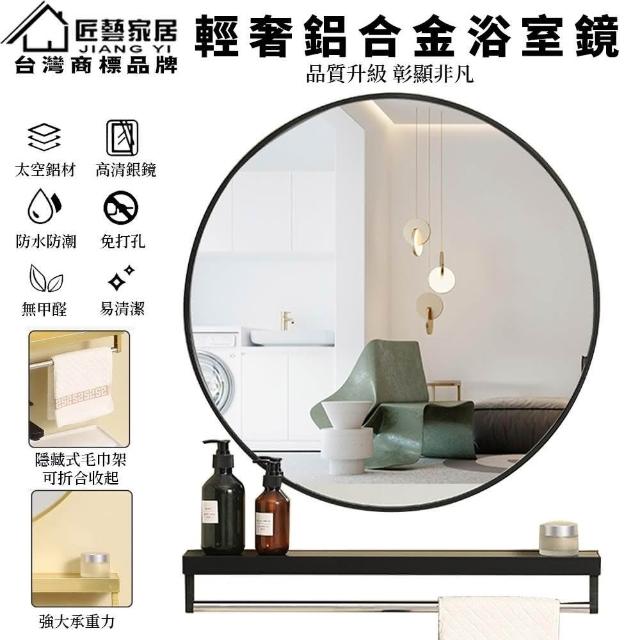 匠藝家居免打孔毛巾架浴室鏡 浴室鏡子 浴室鏡 掛鏡 衛浴鏡 浴室圓鏡 圓形鏡子 北歐浴室鏡 圓形浴室鏡 安全防爆鏡面