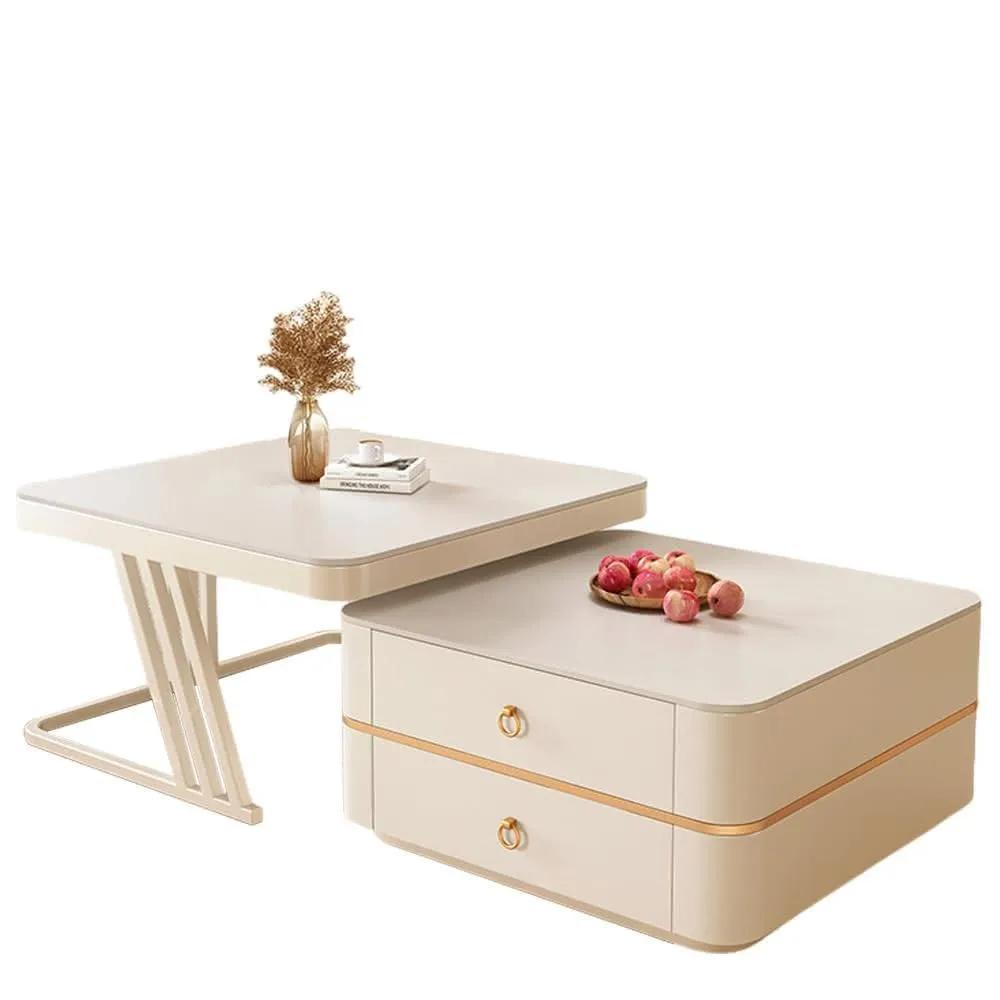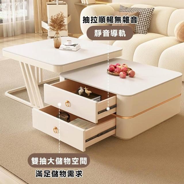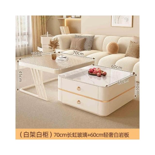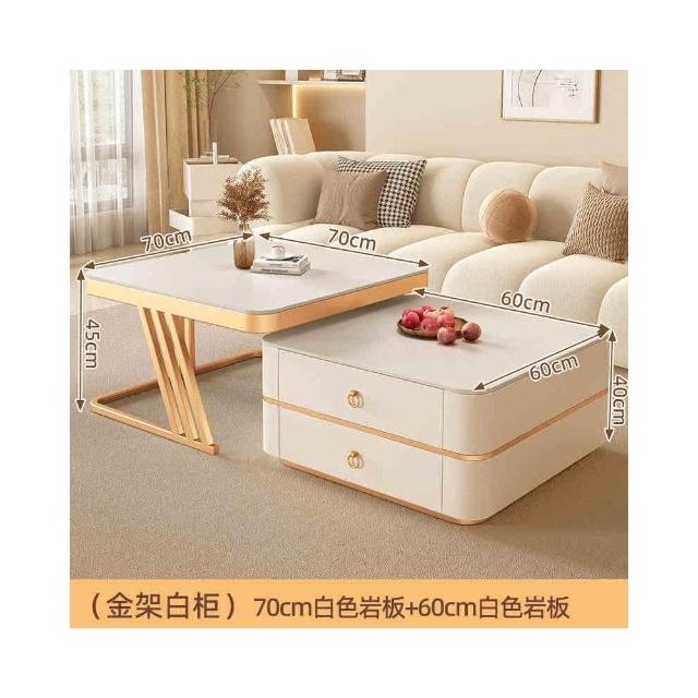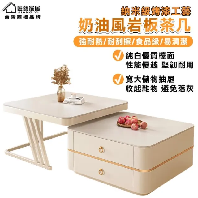 匠藝家居奶油風岩板茶几 子母茶几 客廳桌 茶几桌 子母桌 岩板茶几 整裝出貨免安裝