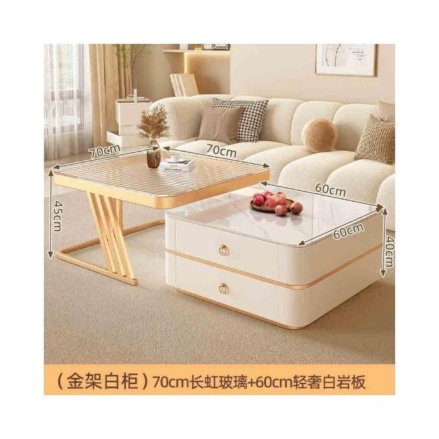 匠藝家居奶油風岩板茶几 子母茶几 客廳桌 茶几桌 子母桌 岩板茶几 整裝出貨免安裝