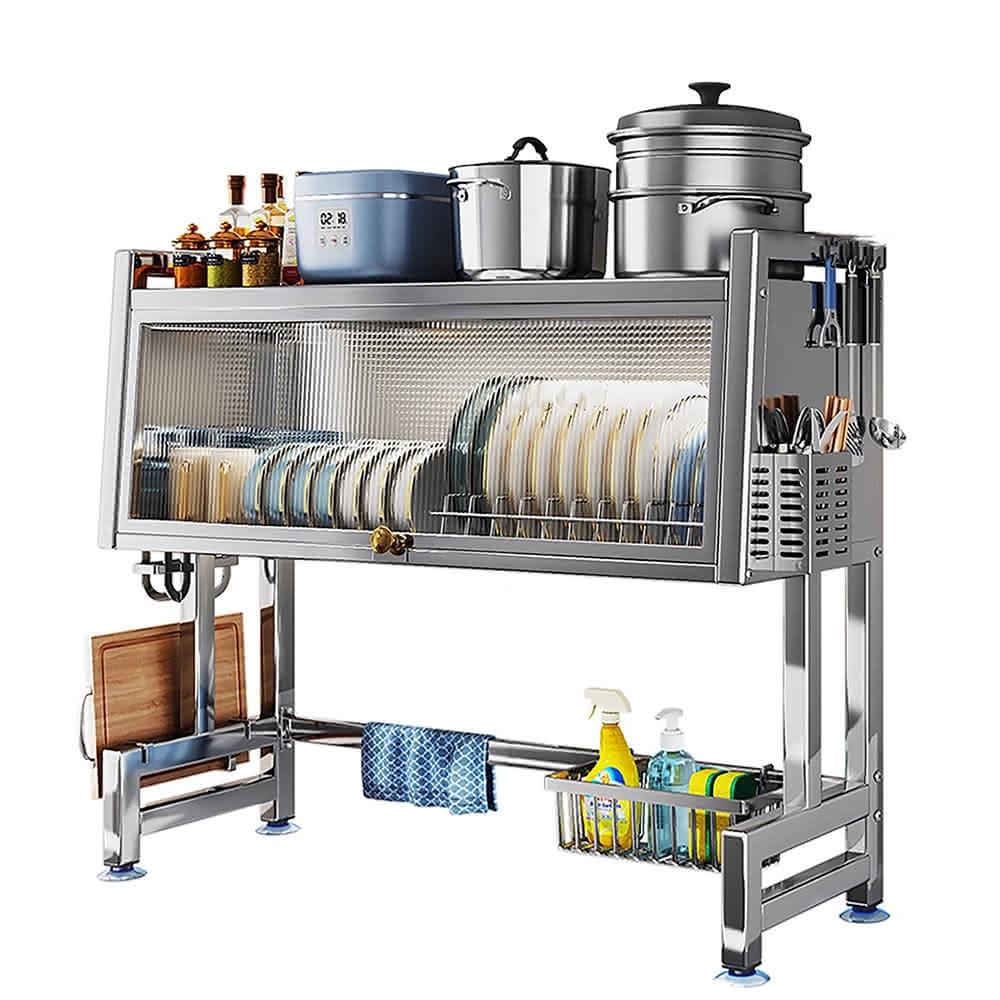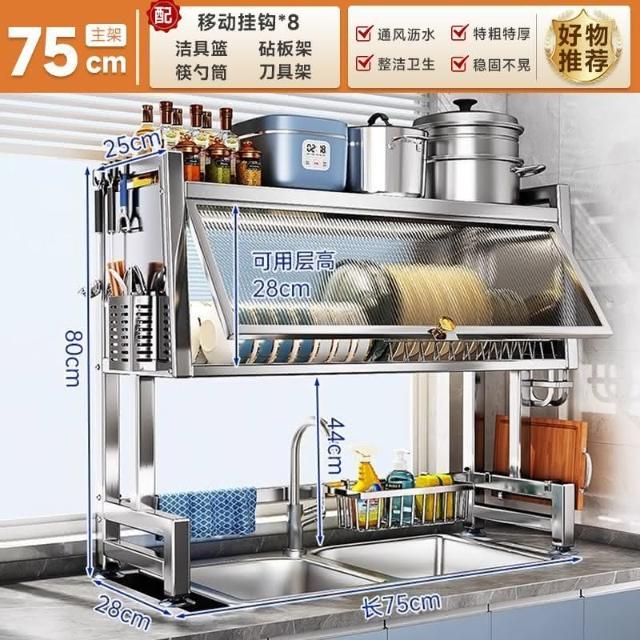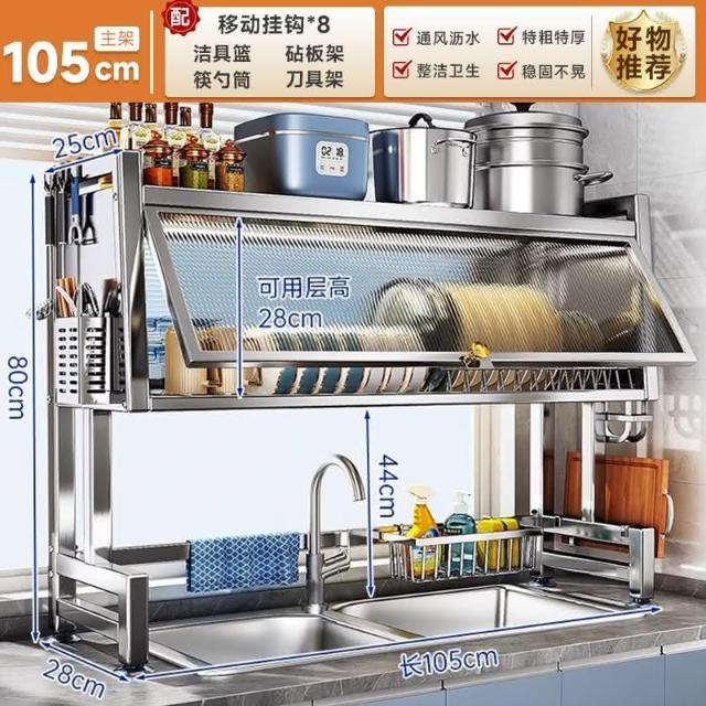 全架升級不銹鋼水槽架帶櫃門防塵
