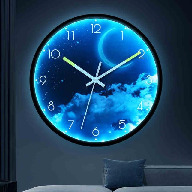 匠藝家居壁掛鐘 夜光掛鐘 靜音創意簡約大氣 客廳鐘表 家用掛墻帶夜燈石英鐘 家庭掛表