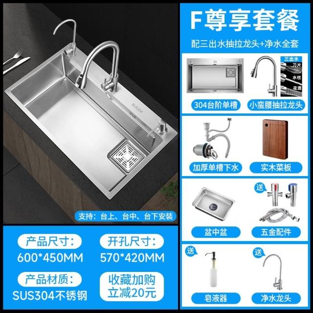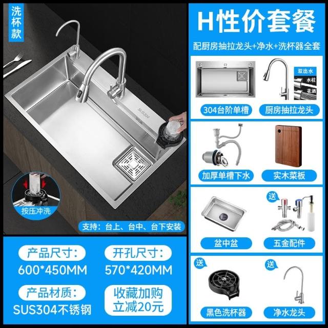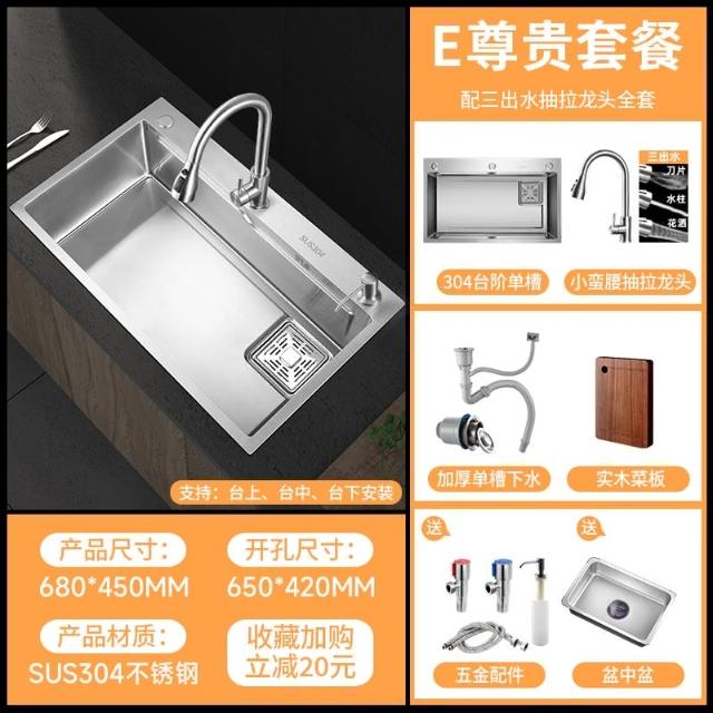 匠藝家居新升級台階側下水 水槽 304不鏽鋼水槽 洗手槽 洗手台 洗碗台 防水防油 納米抗菌塗層