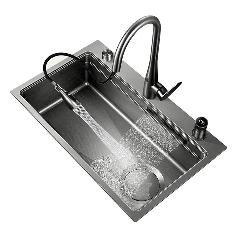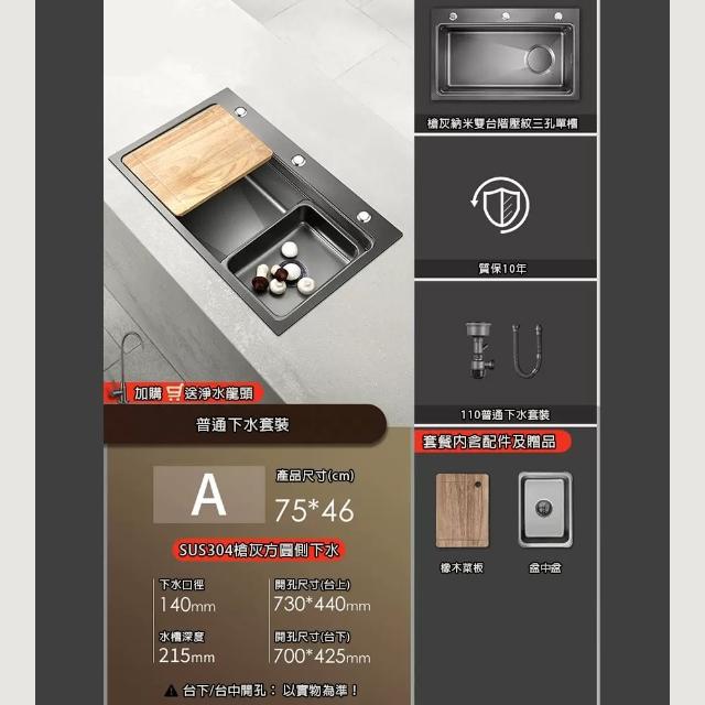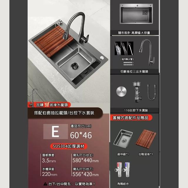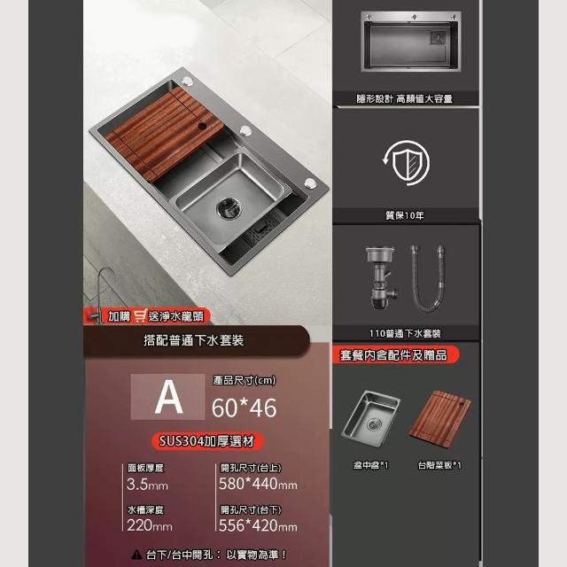 匠藝家居內嵌一體式飛雨水槽 水槽 304不鏽鋼水槽 廚房水槽 納米抗菌塗層 蜂窩壓紋耐刮蹭