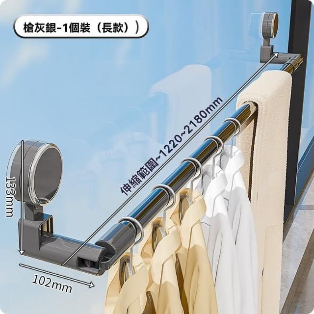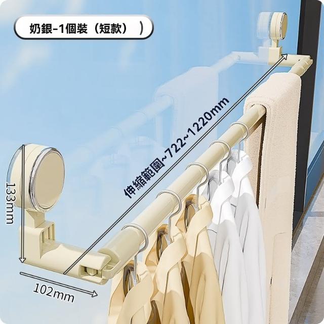 匠藝家居吸盤晾衣桿 伸縮晾衣架 家用陽臺曬被子神器 免打孔曬衣桿飄窗室內外 長短可調 90°旋轉 加強承重