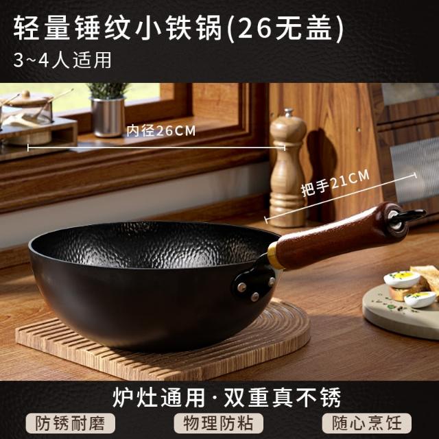 匠藝家居宗師錘紋小鐵鍋 家用炒菜鍋 無塗層不粘鍋 輕量化鐵鍋 鍋子 防鏽防磨 物理防粘