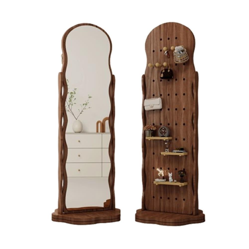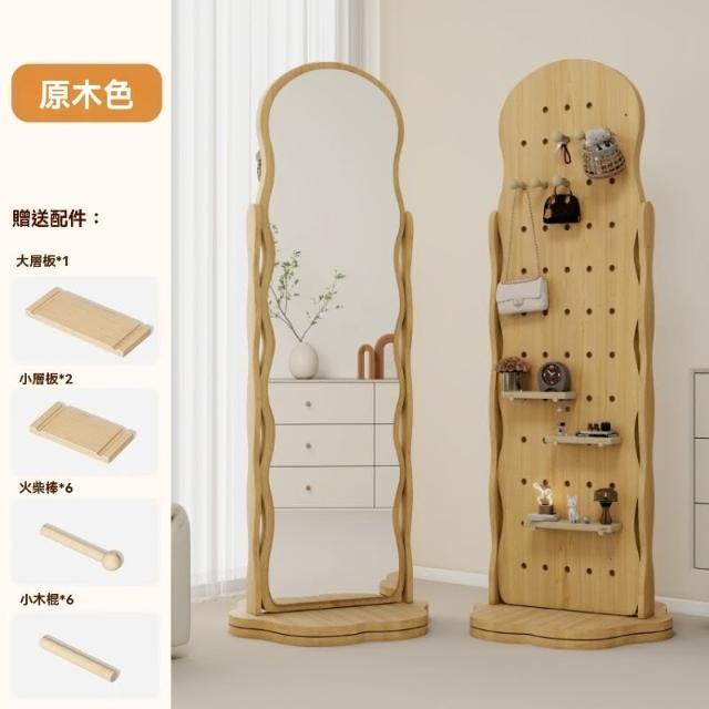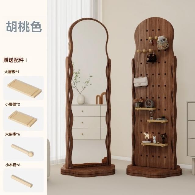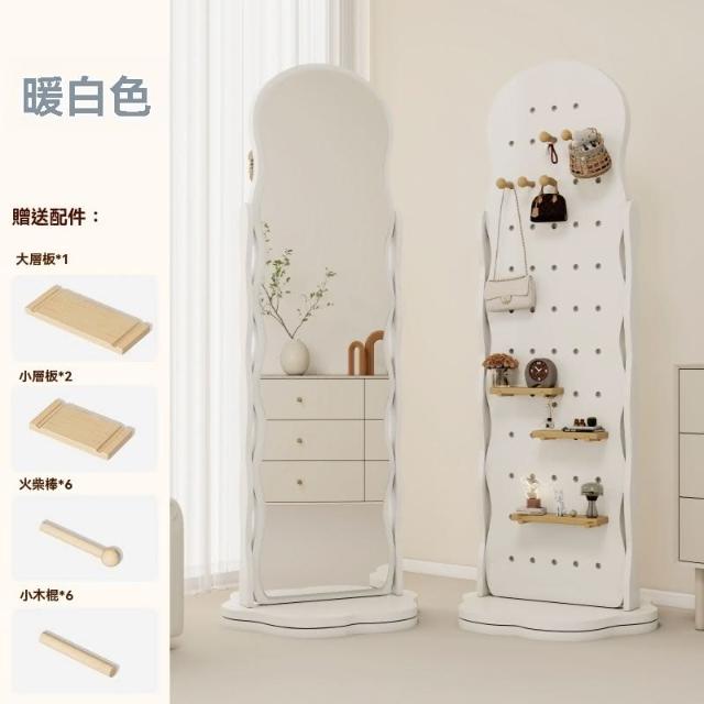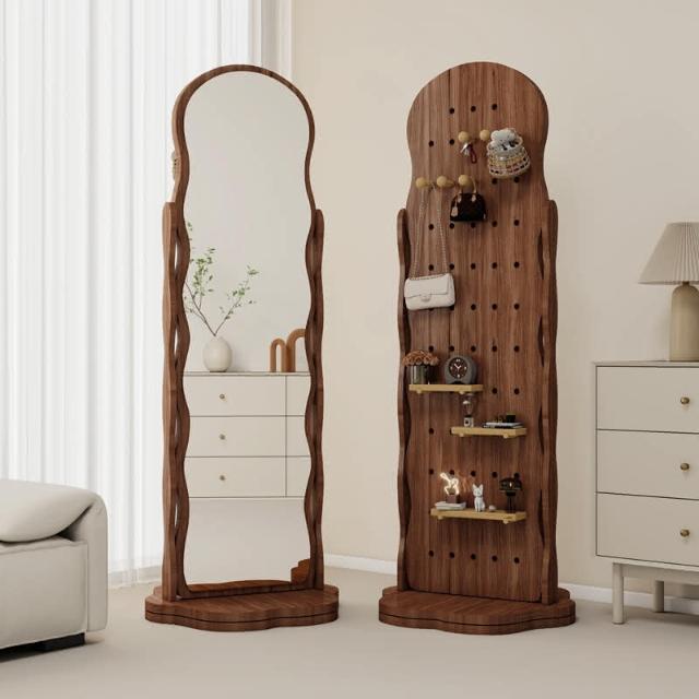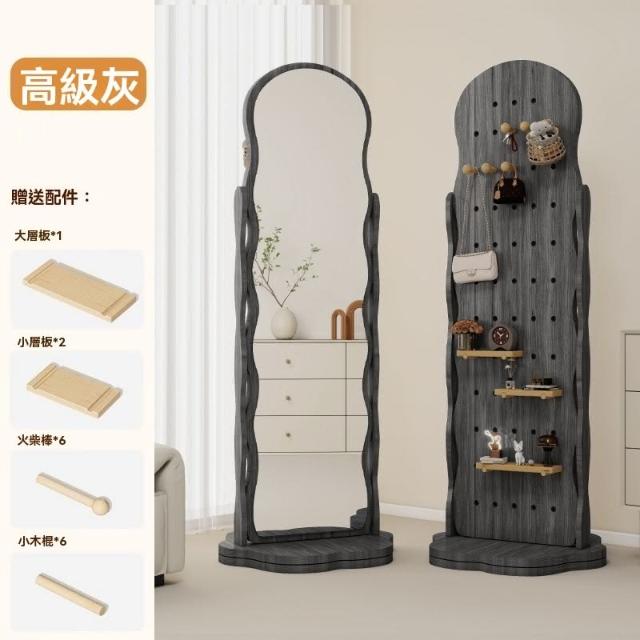 匠藝家居波浪洞洞板穿衣鏡 可旋轉全身鏡子 收納鏡 臥室掛衣帽架 一體落地鏡子 高清不變形