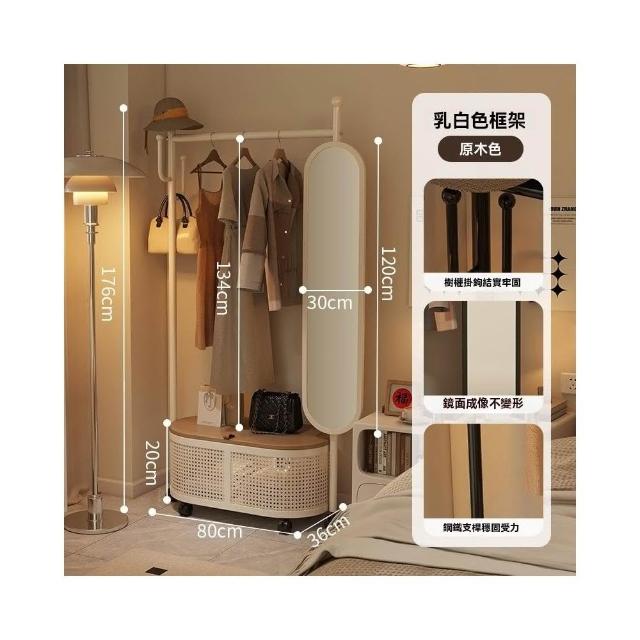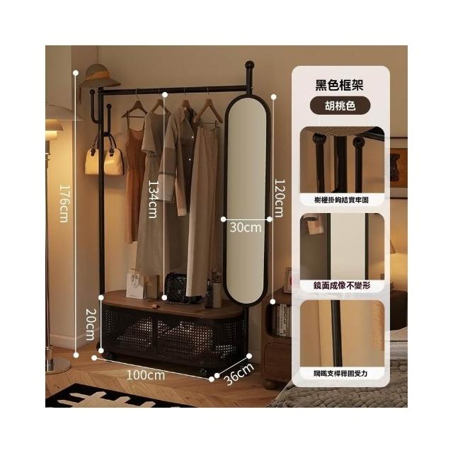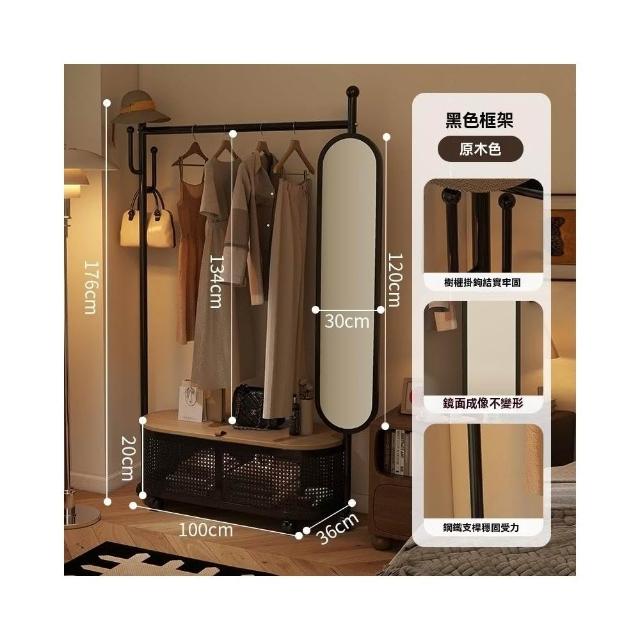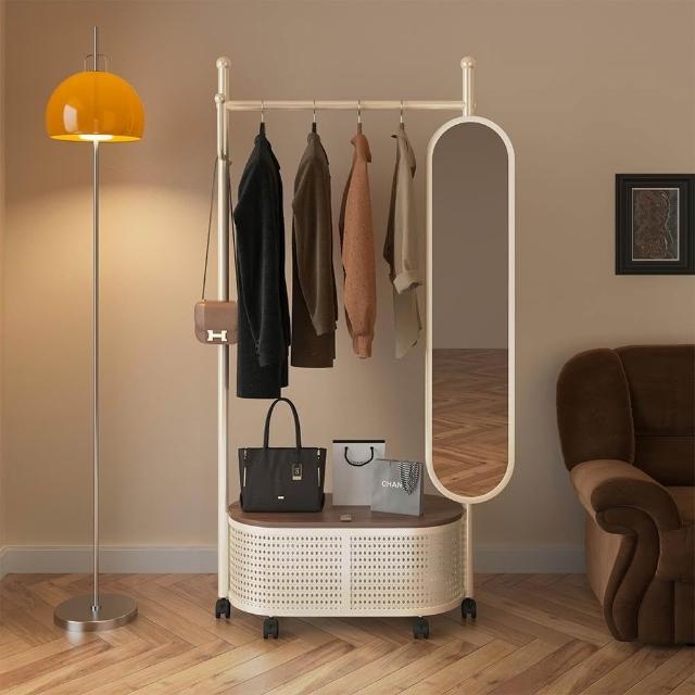 匠藝家居可移動掛衣架帶鏡子 收納架 臥室落地式全身鏡 一體衣帽架 試衣鏡子 置物架子 照鏡/掛衣/置物三合一