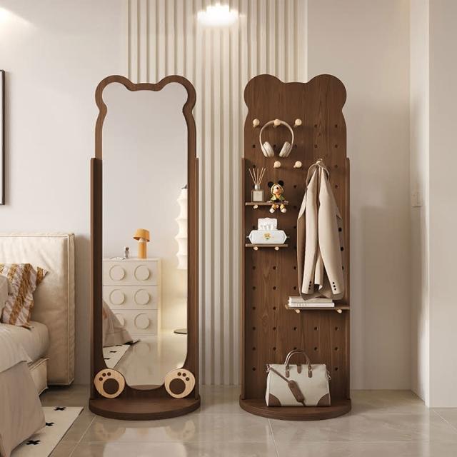匠藝家居全身鏡可旋轉 收納架 穿衣鏡 家用臥室試衣落地鏡 置物架 帶洞洞板掛衣帽架一體鏡子 高清成像 高度可調節