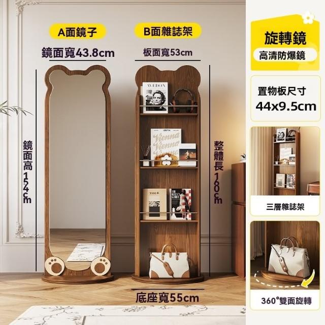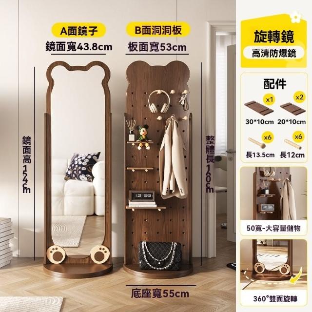 匠藝家居全身鏡可旋轉 收納架 穿衣鏡 家用臥室試衣落地鏡 置物架 帶洞洞板掛衣帽架一體鏡子 高清成像 高度可調節