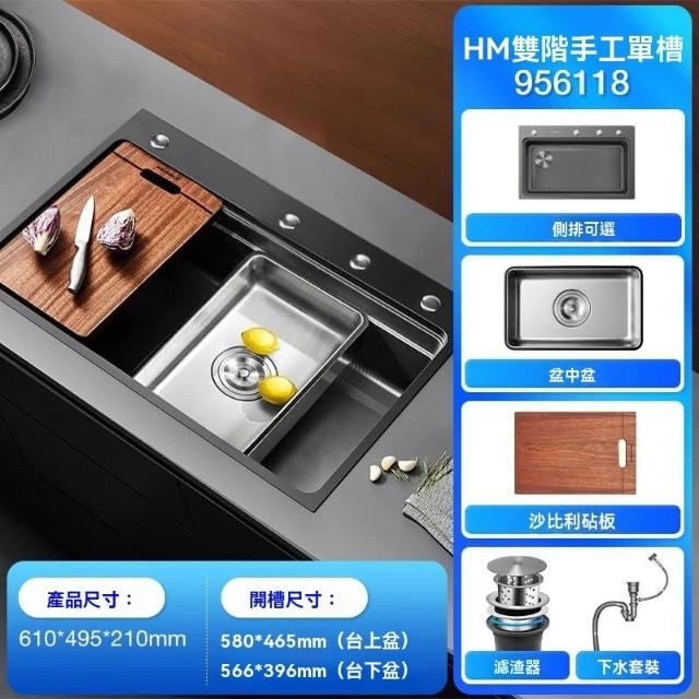 匠藝家居廚房手工水槽 大單槽304不銹鋼 石紋納米瀑布 臺上下水洗菜池盆 水槽 PVD納米 疏水疏油 仿生石紋 加倍抗刮
