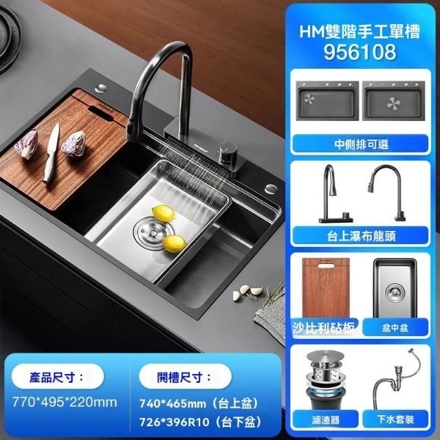 匠藝家居廚房手工水槽 大單槽304不銹鋼 石紋納米瀑布 臺上下水洗菜池盆 水槽 PVD納米 疏水疏油 仿生石紋 加倍抗刮