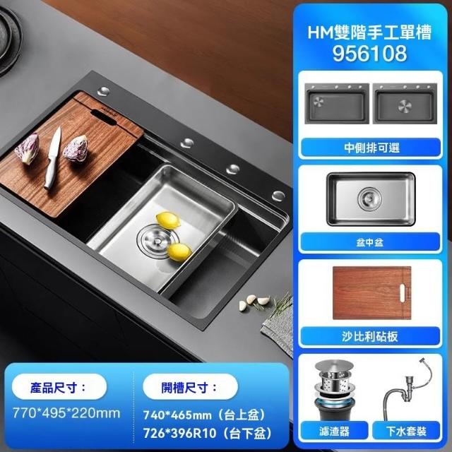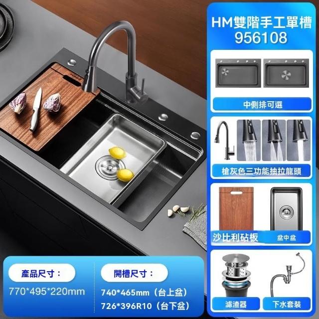 匠藝家居廚房手工水槽 大單槽304不銹鋼 石紋納米瀑布 臺上下水洗菜池盆 水槽 PVD納米 疏水疏油 仿生石紋 加倍抗刮