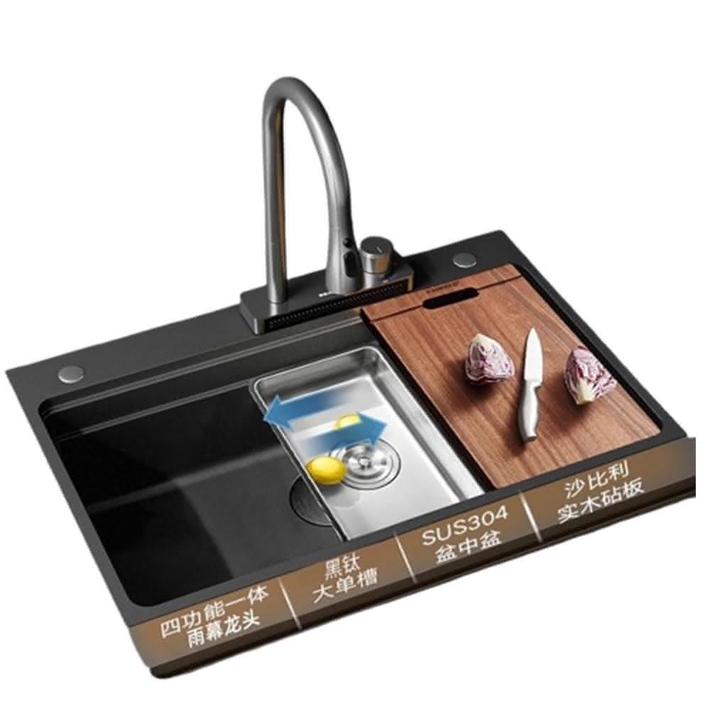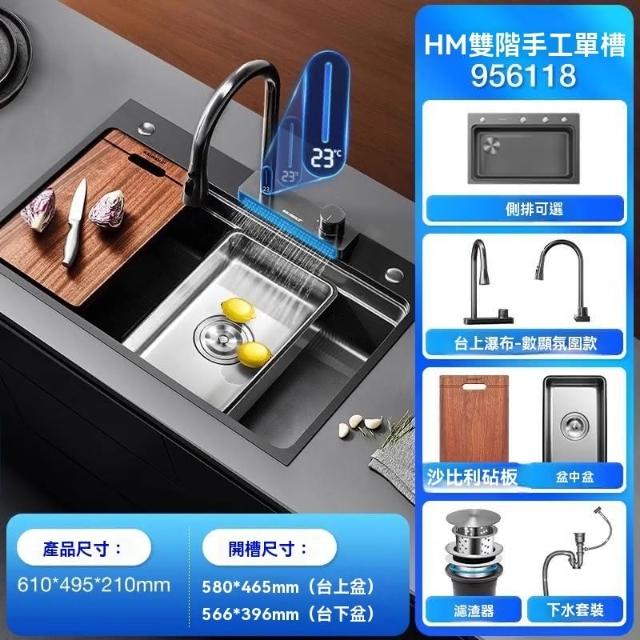 匠藝家居廚房手工水槽 大單槽304不銹鋼 石紋納米瀑布 臺上下水洗菜池盆 水槽 PVD納米 疏水疏油 仿生石紋 加倍抗刮