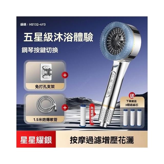 匠藝家居雙渦輪增壓花灑噴頭 花灑頭 超強加壓大出水 蓮蓬頭 淋浴頭浴室洗澡蓮蓬頭套裝 升級矽膠出水孔